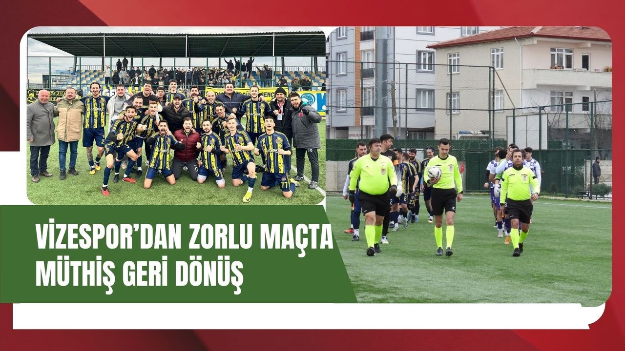 Vizespor, 2025-2026 Süper Amatör Ligi Kenan Özkan Sezonu 15. hafta mücadelesinde Lüleburgaz Kentsporu’u 3-1 geriye düştüğü karşılaşmada 4-3 mağlup etmeyi başardı. Maçta 10 kişi de kalan Vizespor’a galibiyet gollerini Emre Özten (2), Uğur Akter ve Barış Sinan getirdi.