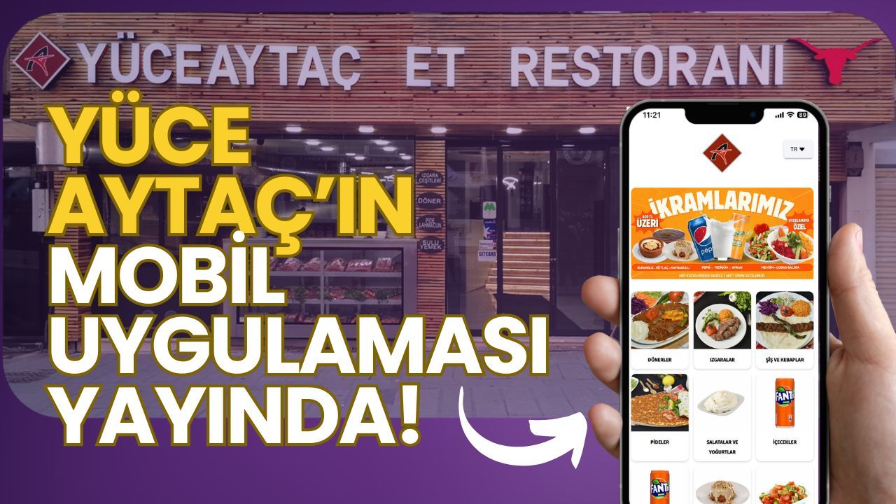 Yüce Aytaç Et Restoranı tarafından yapılan duyuruda; “Yüce Aytaç Mobil uygulamamız artık yayında! Mobil uygulamamıza özel siparişlerinizde içeceğiniz, tatlınız ve salatanız bizden hediye! Uygulamayı indirin ve Yüce Aytaç’ın eşsiz lezzetlerini keşfedin!